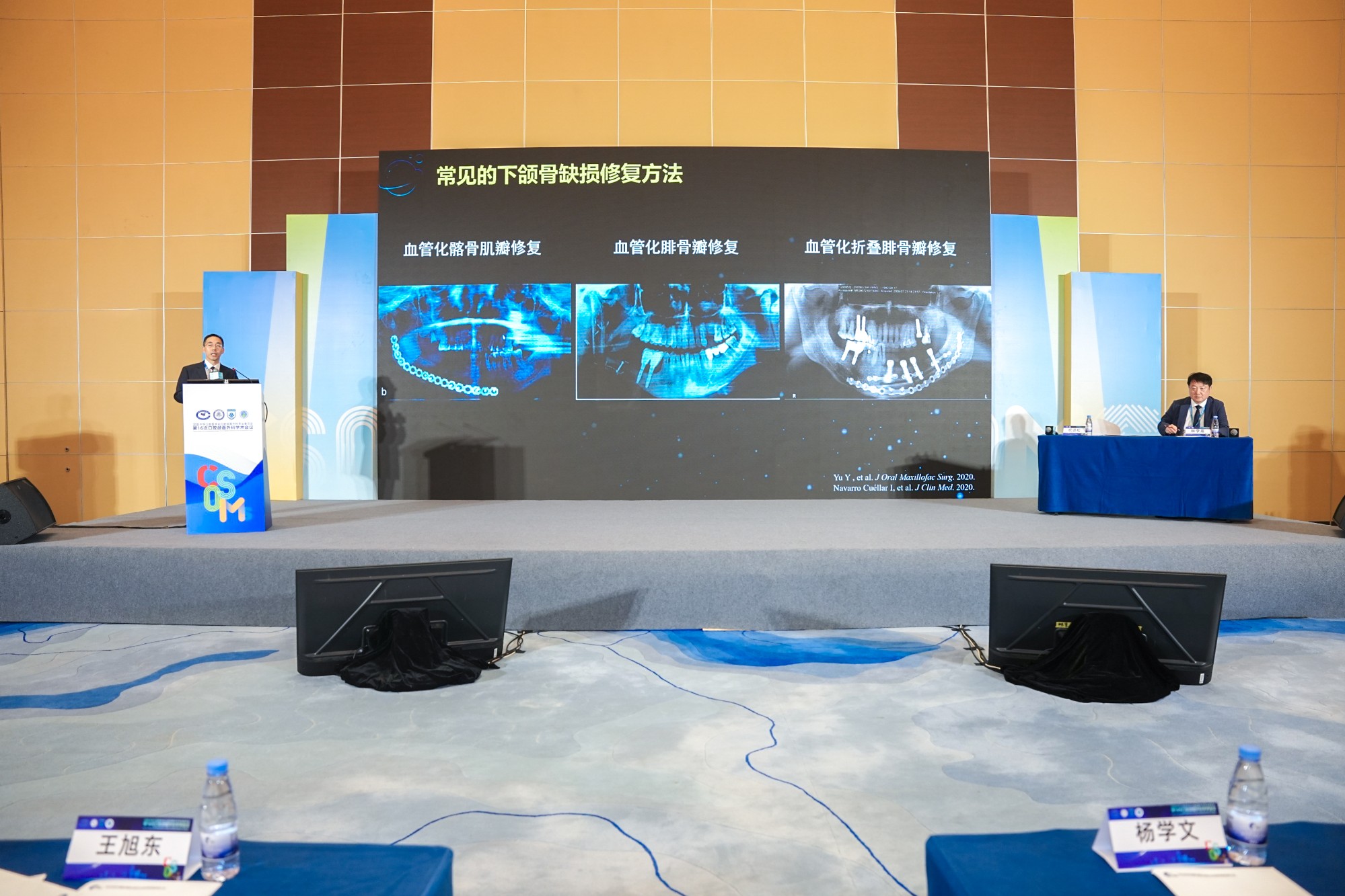 在学术交流环节,肖金刚教授受邀主持“创伤及正颌专题口头汇报专场”,并作题为《数字化技术引导的血管化髂骨瓣移植与个性化下颌骨功能性重建》的专题报告,介绍了我院在该领域的技术进展与临床经验。赵丹副主任医师主持“口腔颌面-头颈肿瘤(基础)”壁报专题环节。