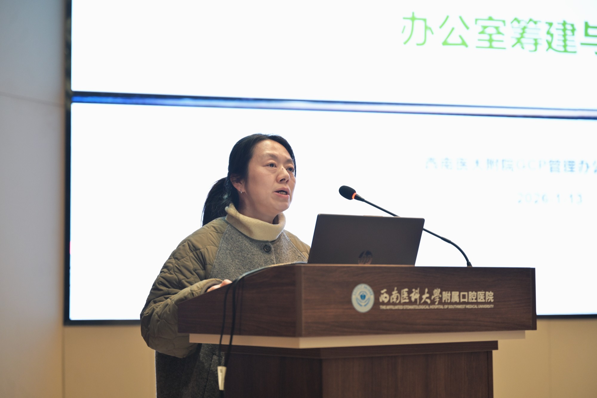 1月13日下午,西南医科大学附属口腔医院在云峰路院区五楼学术报告厅成功举办了以“夯实基础,高效推进”为主题的GCP(药物临床试验质量管理规范)专题培训会。本次培训特邀西南医科大学附属医院临床研究管理部部长、药物与医疗器械临床试验中心副主任江凤及其团队进行专题授课,全院各相关科室负责人及业务骨干均参与了此次培训。会议由党委委员、副院长徐晓梅主持。